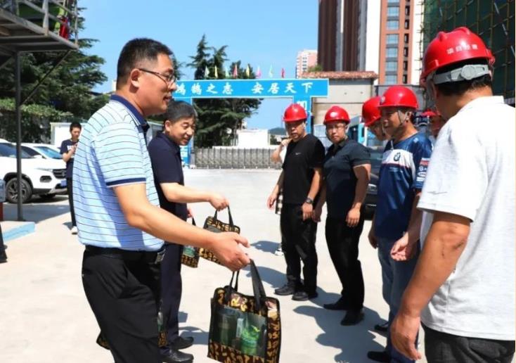 8月4日,市總工會(huì)職工服務(wù)中心主任鄭春剛一行在城建集團(tuán)黨委副書記、總經(jīng)理孫利劍和工會(huì)主席闞吉軍的陪同下,到集團(tuán)新苑陽(yáng)光項(xiàng)目部為冒高溫、戰(zhàn)酷暑的一線職工送清涼,表達(dá)關(guān)懷與慰問。