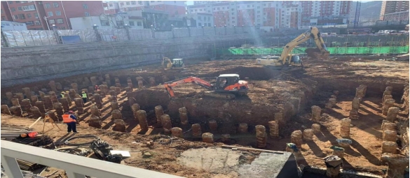 截止目前2#樓CFG樁已施工完成,正在清理樁間土;