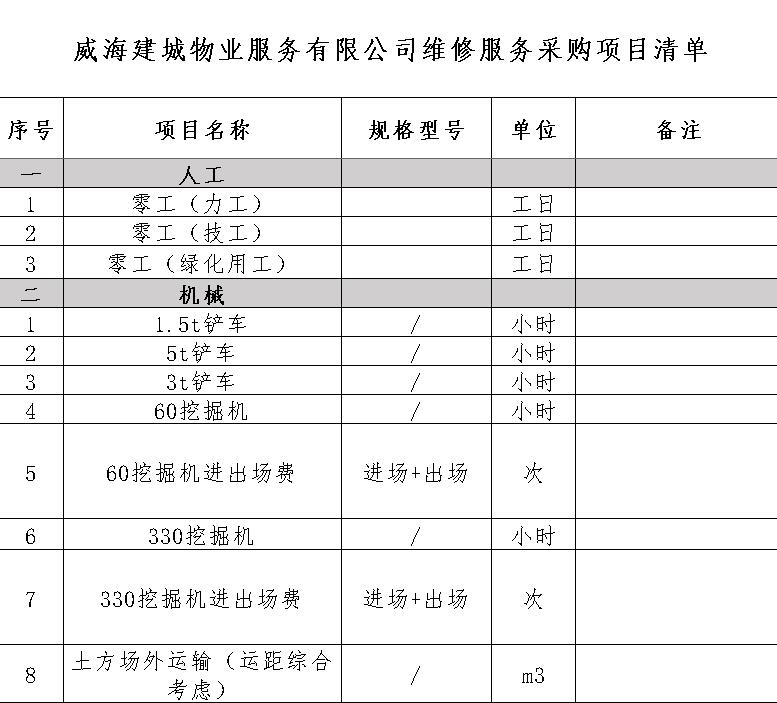 威海建城物業(yè)服務有限公司維修服務采購項目